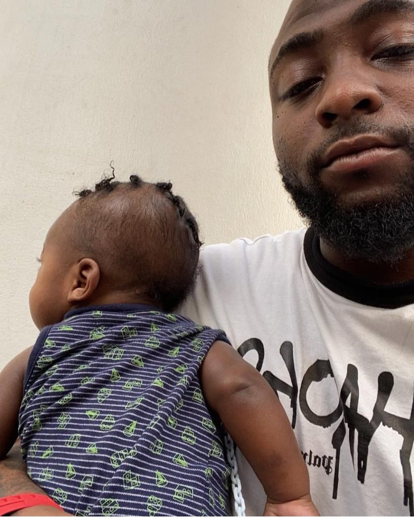 Singing sensation, Davido looks every bit exhausted as he takes up child duties while his fiancee is being treated for the Corona Virus Disease 2019.
