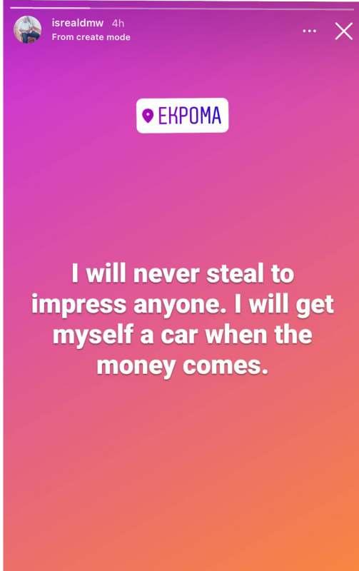 In reaction, Isreal DMW takes to his Instastory to evade the allegations while affirming that he cannot do more than his capability.