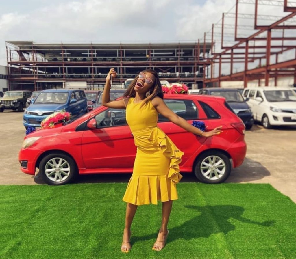 BBNaija Reality Star, Khafi Kareem has received her vehicle from Innoson Motors.