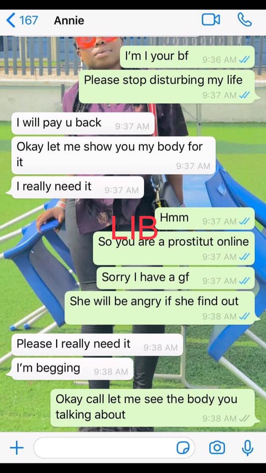 According to Nigerian man, the porn star decided to shame him online after he refused giving her the money she begged for.
