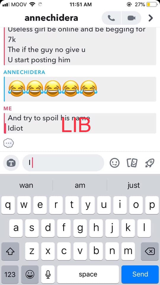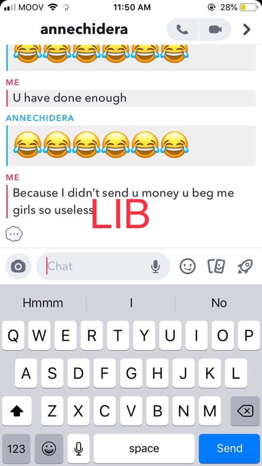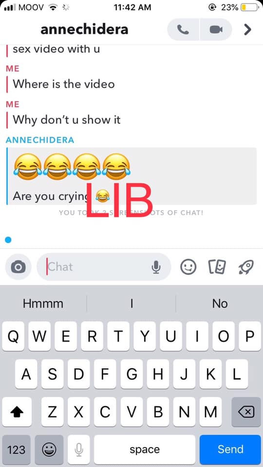 He also debunked Annie Blonde’s claim of them meeting for the first time on the day of the incident. The Nigerian man said that they met on Snapchat and contrary to the claim, he didn’t have any video s*x with her.
