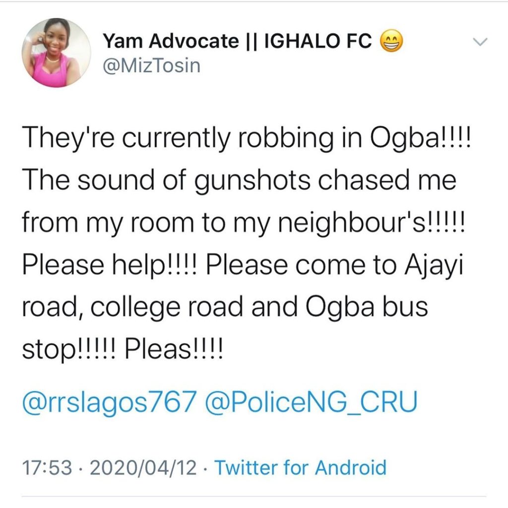 Some residents of Lagos witnessed robbery attacks yesterday April 12, barely 24 hours after #Lagosunrest took the first spot in Nigerian Twitter trends over same attacks amid the lockdown order issued over the outbreak of Coronavirus in the country.