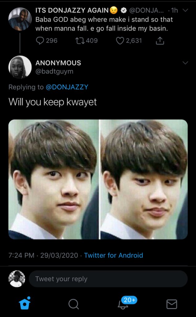 Then one of his followers, @badtguym replied him in an hostile manner saying the producer should keep mum.