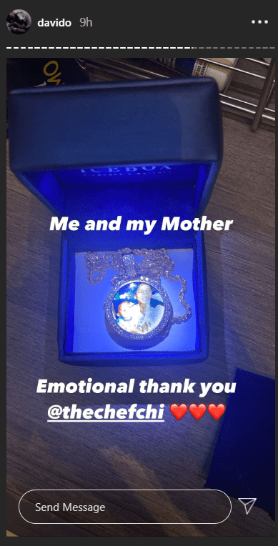 Emotional Davido shared a photo of the gift and wrote; “Me and my mother. Emotional thank you @chefchi”