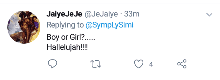 As simple and random as the tweet may be, it has sparked speculation among her fans as to what she’s giving “glory to God” for and given her current situation, people are not thinking far from her delivering her baby.