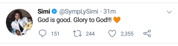 “God is good, glory to God!” – Singer, Simi sparks delivery speculations with new tweet