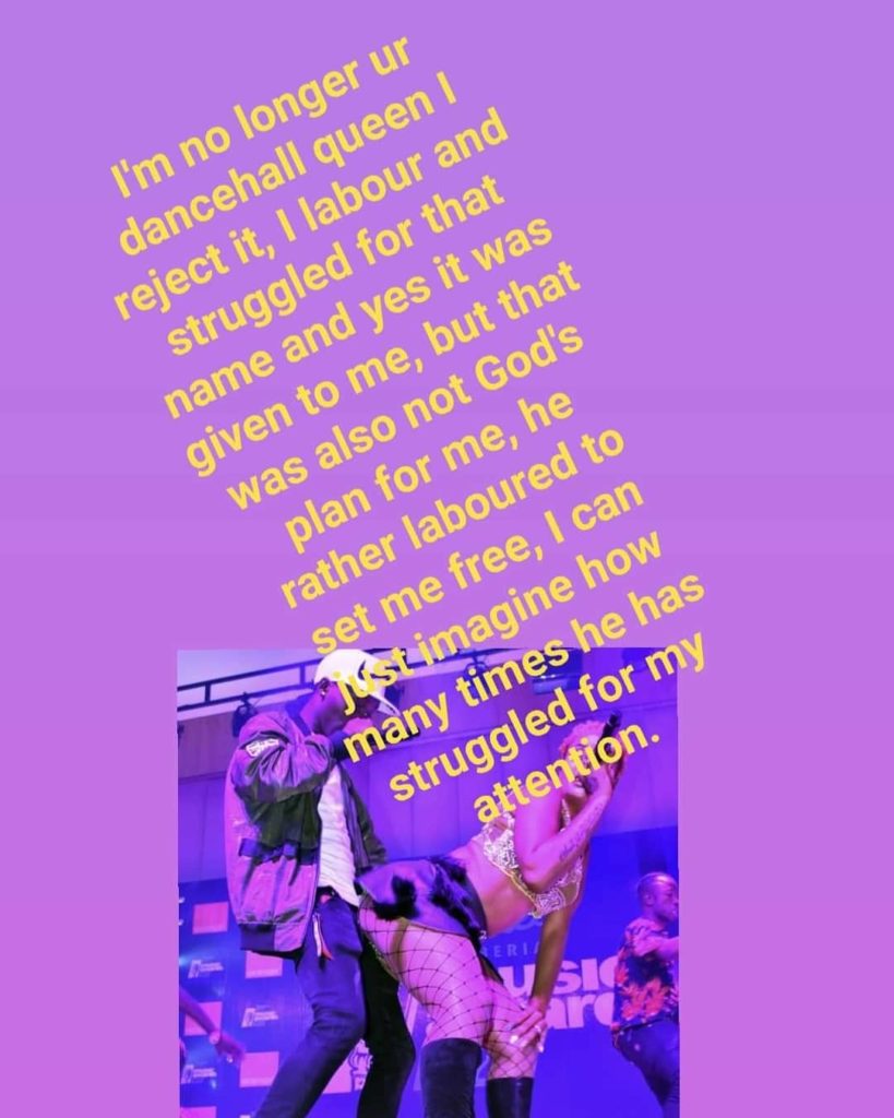 In her testimony of redemption, she says all the affluence she garnered as a dancehall queen could never bring her the healing she truly wanted and she’s ready to give it all up to follow the Lord cause she’ll rather not suffer here on earth and in hell too.