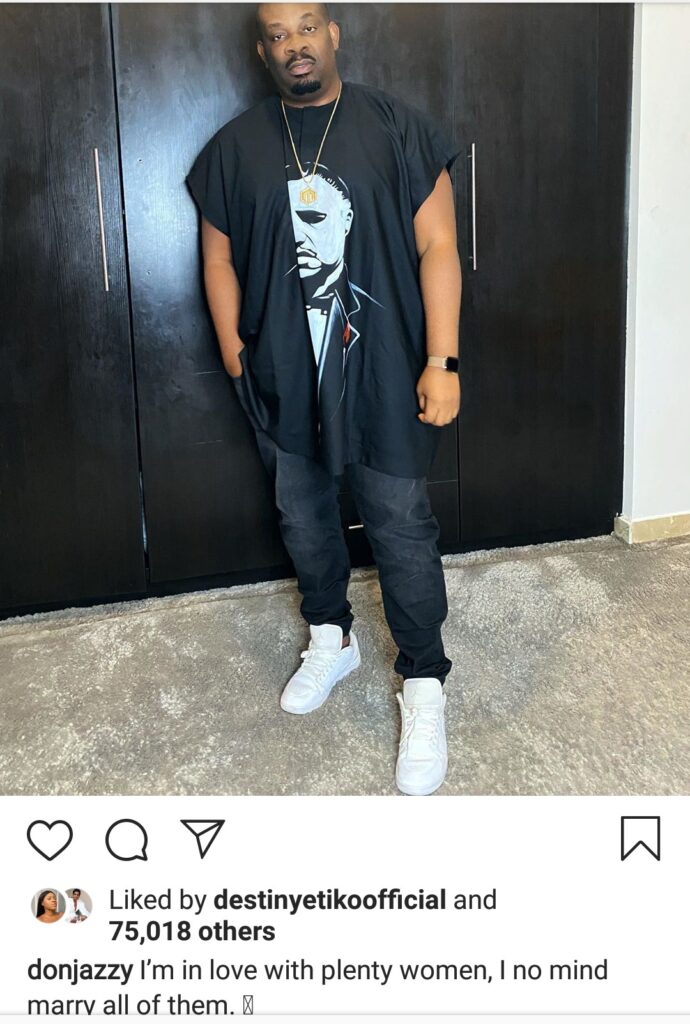 Well, in respect to that, Donjazzy, has taken through his caption this moring, to reveal, that he’s in love with so many women, and wouldn’t mind having all of them.
