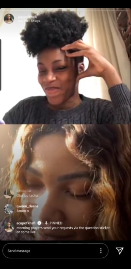 Well, Khafi… on her Instagram page, not too long ago, held a prayer session with her followers on the live feature and one of the people who featured in the session was Tacha.
