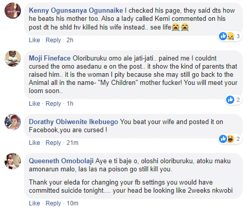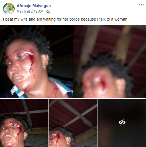 A Nigerian man identified as Afobaje Maiyegun has aroused outrage from other social media users after he shared photos of his wife’s battered face.