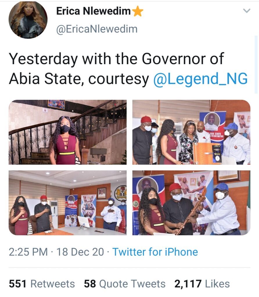 Erica took to her twitter account to nake this revelation, and also shared some photos from the event!