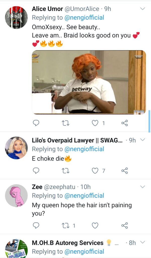 In a video Nengi shared on her official Twitter page, the ex-beauty queen effortlessly looked stunning on the braids.
