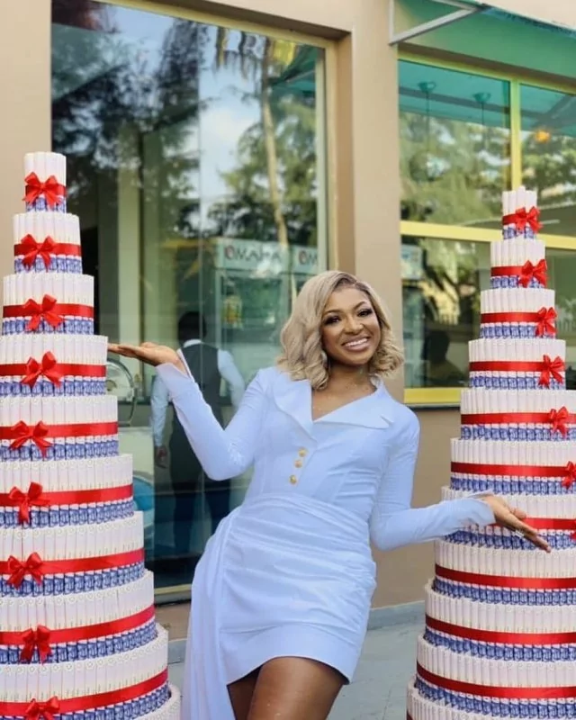 Reality star, Liquorose receives two huge money cakes from fans (Video)
