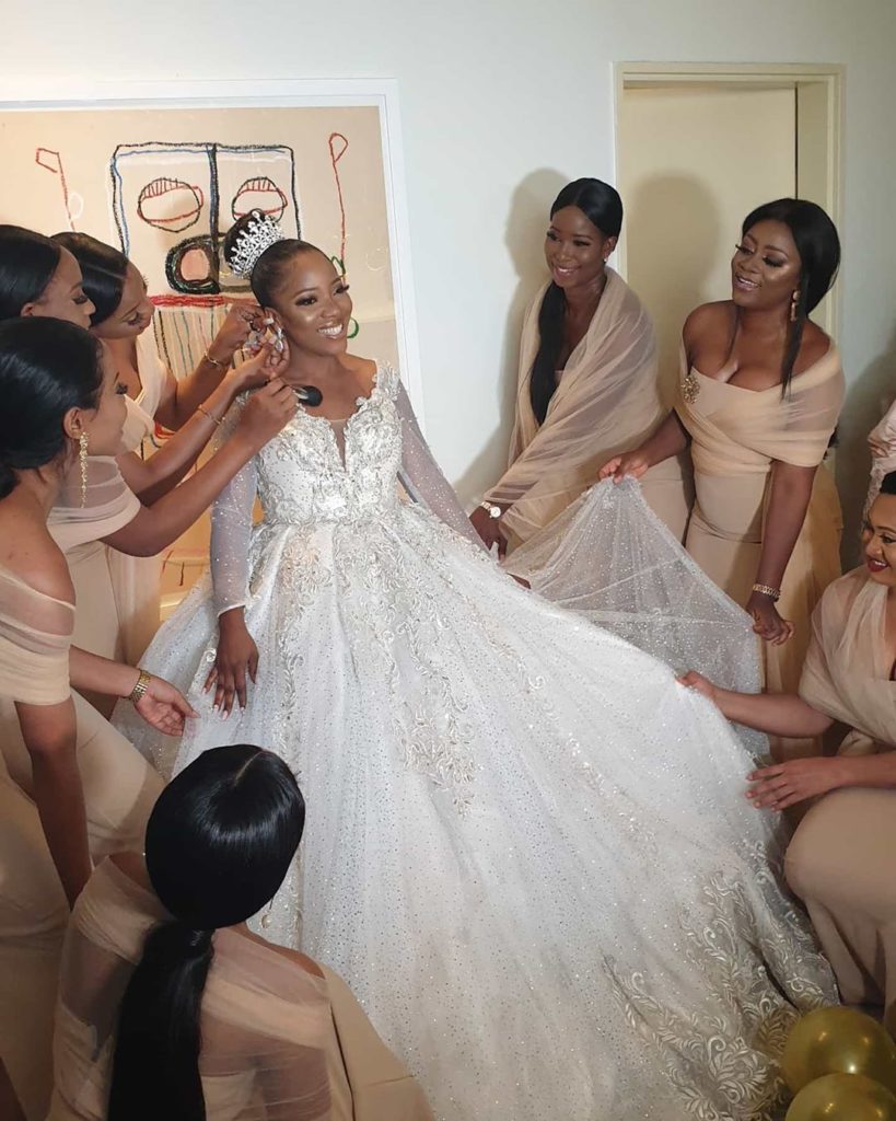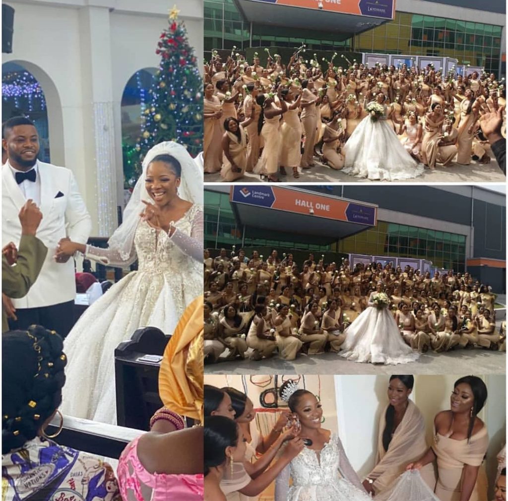 Sandra Ikeji, an event planner and younger sister of blogger Linda Ikeji, is presently getting married to the love of her life at the Landmark event centre, Lagos surrounded by 200 bridesmaids.