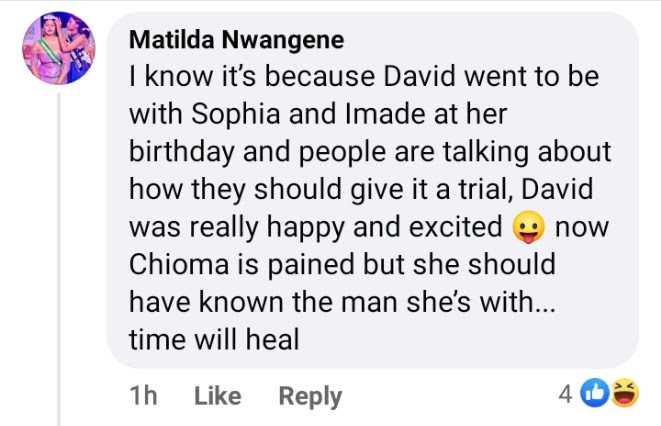 This was followed by a reaction from a troll after the snapshot was shared to another social media platform, where the troll alleged that Chioma is pained because Davido left her to be with his other baby mama, Sophia, and their daughter, Imade.