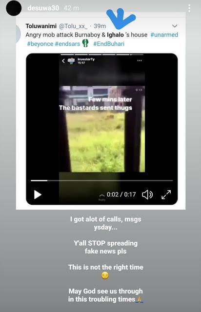 “I got a lot of calls, msgs ysday… Y’all STOP spreading fake news pls. This is not the right time. May God see us throuhg in this troubling times,” Ighalo’s wife wrote.