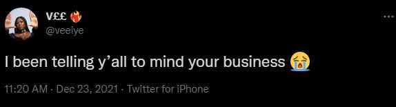 Amid these break-up speculations, Vee took to her Twitter handle to make an assertion that caught the attention of many. Vee in the tweet urged everyone to mind their business for the moment.