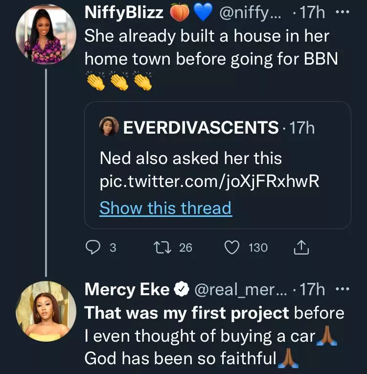 This is coming after the ex-housemate in a tweet stated that she had driven three cars of her own and owned a house before fame.
