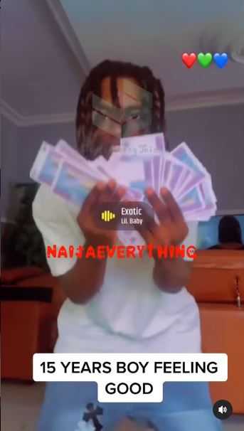 In the short video, the boy could be seen randomly spraying his money while bragging and outlining the scary requirements.